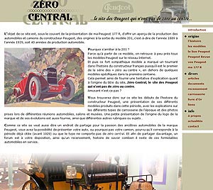 Zéro Central ![]() L'objet de ce site est, sous le couvert de la présentation de ma Peugeot 177 R, d'offrir un aperçu de la production des automobiles et camions Peugeot, des origines jusqu'à l'année 1929. >> Visiter le site |