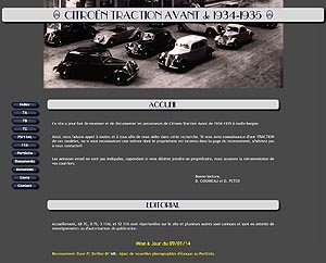Traction avant de 1934-35 ![]() Ce site à pour but de recenser les Citroën Traction avant de 1934-35, mais aussi d'informer les collectionneurs et amateurs sur ces modèles particuliers. >> Visiter le site |