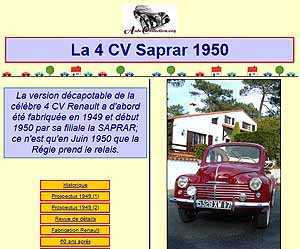 La 4cv décapotable Saprar ![]() Présentation et historique de la première 4 cv décapotable réalisée par la saprar, filiale de renault. Photos d'un des rares exemplaires encore en circulation. >> Visiter le site |