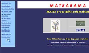 MatraRama ![]() Matra et ses défis automobiles. Toute l'histoire Matra ou 40 ans de passion automobile. Site conçu et réalisé par André Dewael. >> Visiter le site |